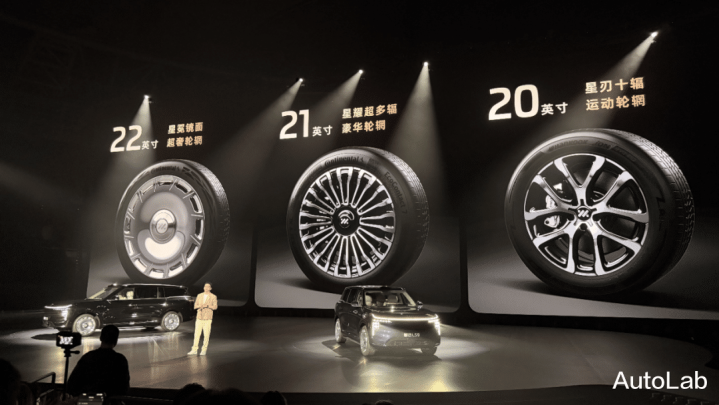 三款轮毂中,20英寸轮毂搭配的胎宽为255mm规格,品牌为韩泰;而21和22英寸均为265mm规格,品牌为马牌。如果你对能耗和换胎的价格不敏感,那么“白给”的21英寸肯定是必选项。