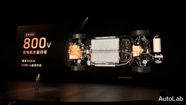 LS9后轴电机功率为230kW,标准版前轴电机150kW,高配版160kW,以此抵消电池容量差异。