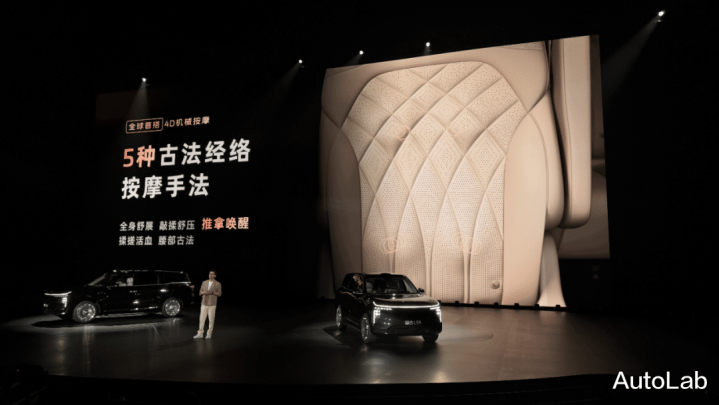 在现场简单过后,我个人认为“感知最强”的配置莫过于它的4D机械式座椅按摩了,它支持多种按摩手法,就像你家里的按摩沙发一样,并且它还能够结合座椅加热,模拟“热石按摩”的功能。