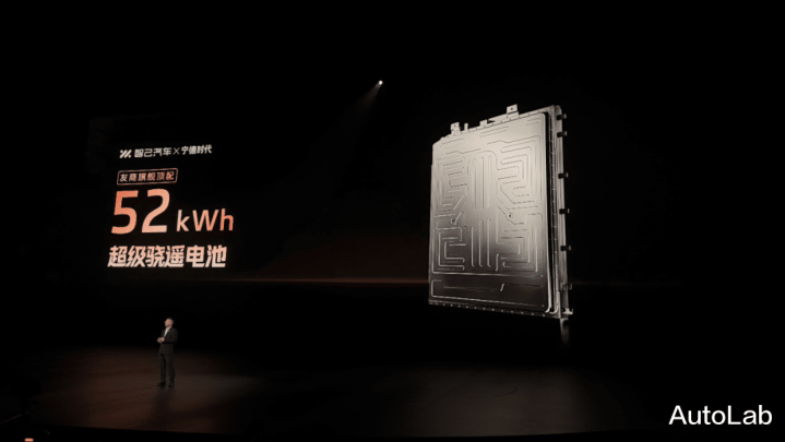 两款车在动力上均搭载了恒星增程系统,“52 Ultra”版本顾名思义搭载了52度宁德时代电池,CLTC纯电续航320km。
