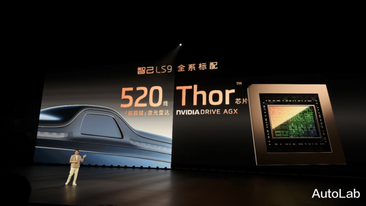 辅助驾驶部分,智己的LS9也非常舍得堆料,搭载了Thor芯片和速腾聚创的520线激光雷达。