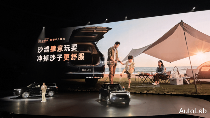 就譬如前不久火出圈的后备箱热水器,选装“野奢户外套装”后,后备箱将配备一个下沉式10L小水箱,可连接车载220V电源,在10分钟内将水加热至45℃。